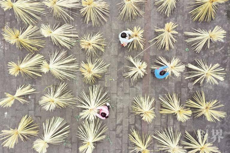 1月17日,赤水市旺隆镇鸭岭村村民在院坝里晾晒竹条。近年来,有着“中国竹子之乡”之称的赤水市依托132.8万亩竹林资源,采取“支部+企业”模式,引导农民发展竹编、竹用品、竹木建材等竹制品精深加工产业,带动当地群众家门口就业增收。