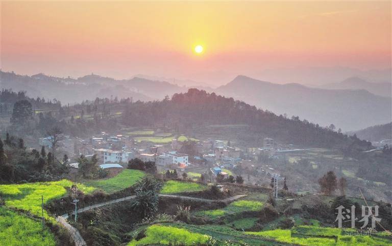 阳光下,该村油菜花盛开,各种蔬菜翠绿诱人;村居鳞次栉比,炊烟袅袅;群山重重,薄雾朦胧,美不胜收。