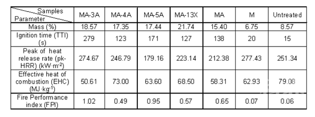 不同沸石阻燃涂料的CONE试验燃烧参数