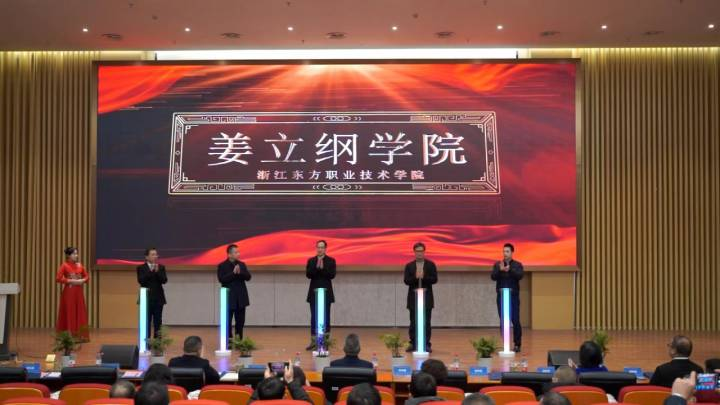 “十四五”开局以来,浙江东方职业技术学院便形成以劳模工匠精神为主线,打造瓯窑、剪纸、书法等为亮点的“1+X”校园文化新格局,并以“医康养、数智造”两大专业群为高峰,以数字贸易、智慧财会、智慧文旅等为专业群架构,形成金竹“医养教”、南田“文旅康”、经开区“数智造”三大产教融合实训基地。此次姜立纲学院挂牌成立和塑像落成揭幕仪式的举行,重在构建区域特色文化品牌,深入推进现代产学研合作,实现办学规模、质量内涵双提升。