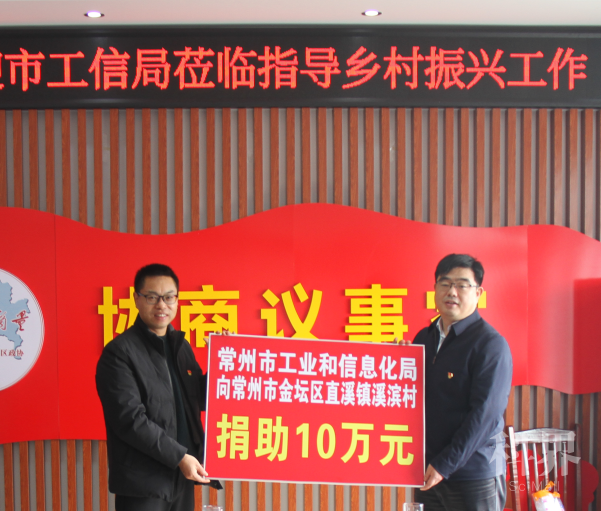 严德群局长还组织召开了帮促工作协调会,与村委一起谋划了党建、产业发展和民生实事等2022年帮促项目计划。随后,在村委会会议室进行了帮扶资金捐赠仪式,捐赠仪式上,严德群局长代表市工信局向溪滨村赠予帮促资金十万元,江苏环泰建设有限公司和常州市武进纬丰色织有限公司分别向溪滨村捐助资金五万元。