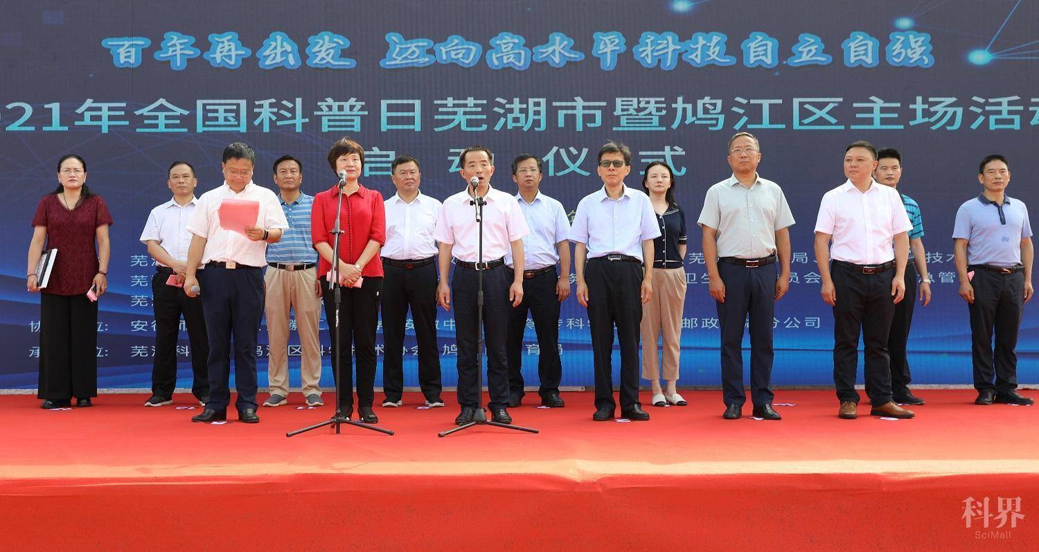 9月11日,2021年全国科普日芜湖市暨鸠江区主场活动在市科技馆广场举行。本次活动由市科协、鸠江区人民政府等11个单位联合主办,市委常委、常务副市长贺东,市人大副主任孙国正,市政协副主席、市科协主席陈怡出席,市科协党组书记、常务副主席刘兴荣主持启动仪式。