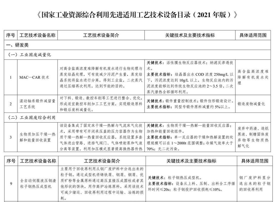 天水锻压产品被列入《国家工业资源综合利用先进适用工艺技术设备目录》