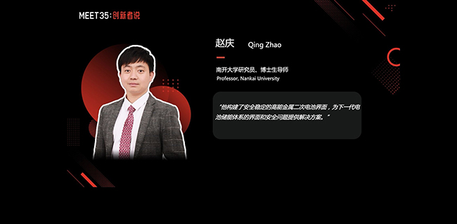 赵庆于2017 年获南开大学无机化学博士学位,师从陈军院士。后赴美国康奈尔大学从事博士后研究,2021年全职加入南开大学。主办方表示,他构建了几类安全稳定的高能金属二次电池界面,为下一代电池储能体系的界面和安全问题提供了解决方案。