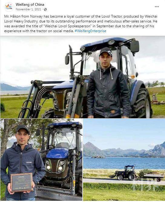 右一:挪威用户Håkon:我是雷沃拖拉机的代言人