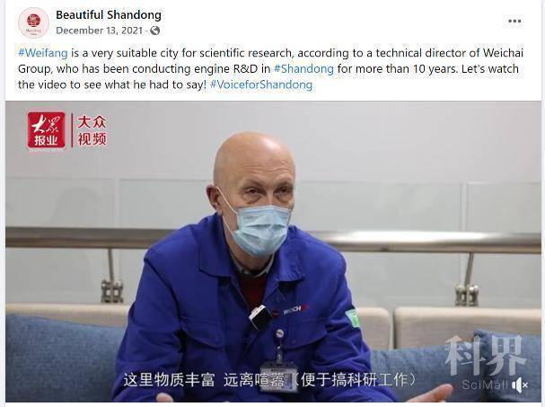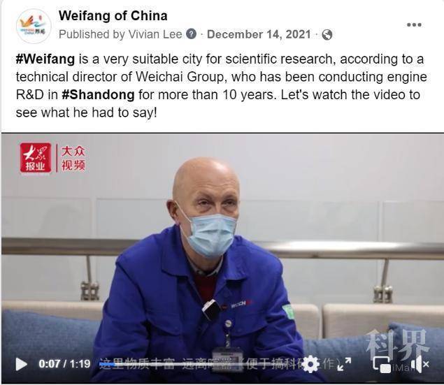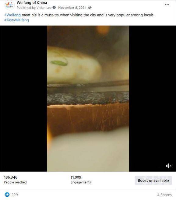 ▲2021年11月17日、12月13日发布的“英文宣传片:潍坊成联合国手工艺与民间艺术之都 新添世界级名片”“外国友人讲山东故事丨潍柴外籍专家欧佩迪:在山东搞研发,成就感和获得感很强”帖文被大美山东脸书转发。