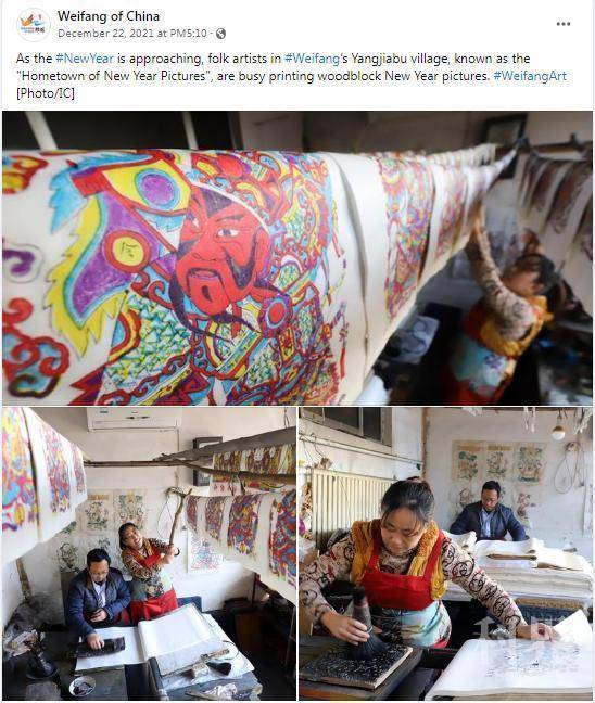 12月,旧岁近暮,新岁将至。为烘托出潍坊市民迎接农历虎年的喜庆氛围,潍坊脸书账号采用文字+组图的形式发布了多条主题帖文。
