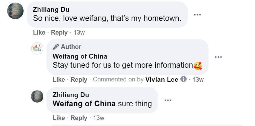 随着潍坊对外开放程度的扩大,越来越多的外国友人来到这里生活、工作,或是使用和购买潍坊产品。潍坊脸书账号于本季度开始,主动策划议题,相继发布了一系列“外国友人看潍坊”帖文,在海外社交媒体平台树立了潍坊国际化的城市形象。