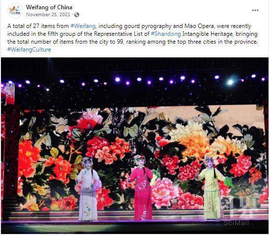▲2021年11月10日,潍坊脸书账号发布“潍坊荣膺世界手工艺与民间艺术之都”被发现美丽中国脸书和大美山东脸书转发。