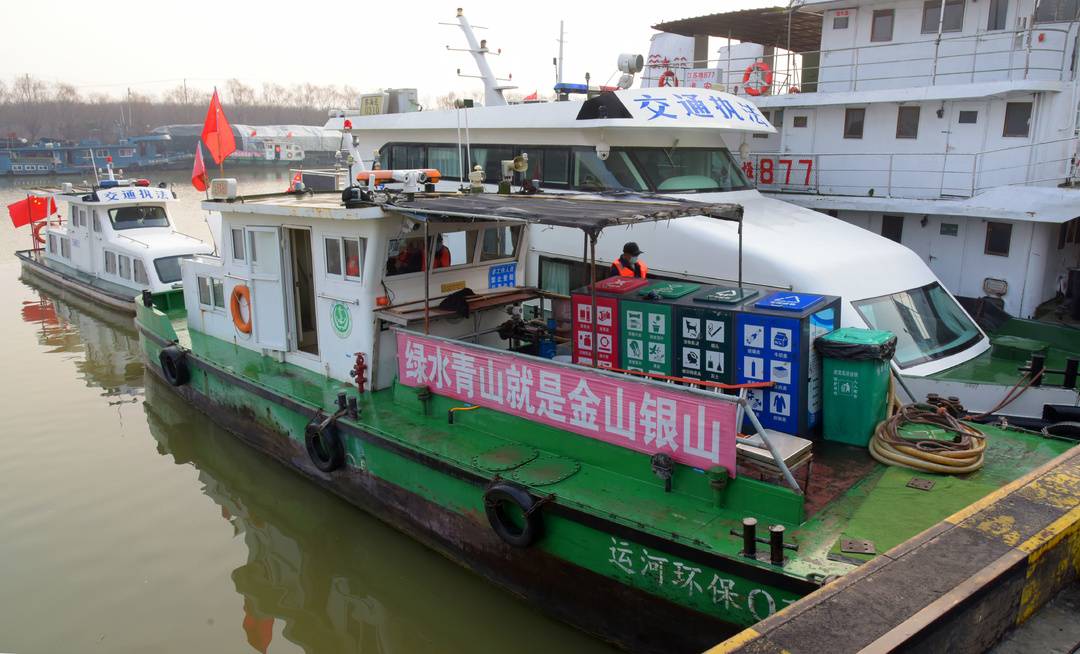 近日,记者在京杭大运河顺堤河作业区看到,一艘多功能接收船正在发挥“水上垃圾站”的功能,运河中行驶往来的货船船员频频伸手示意,有的船上需要回收的仅是生活垃圾,有的则需要回收生活污水。