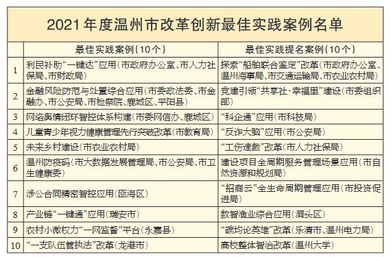2021年度改革创新最佳实践案例出炉 结出更多“温州味”的改革成果