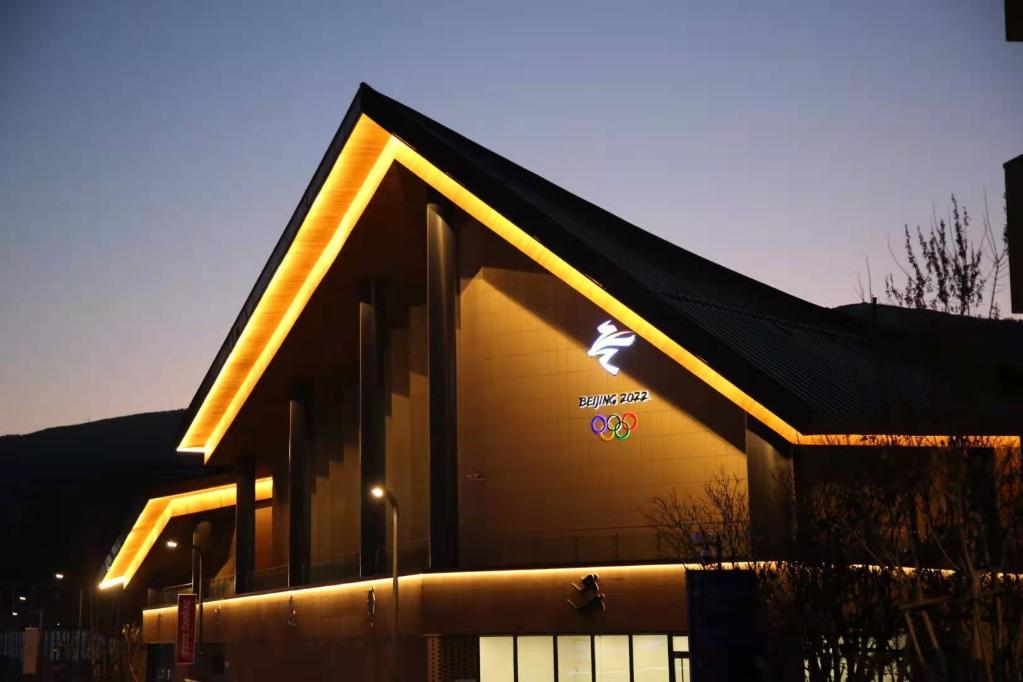 2021年12月21日,张家口冬奥村内建筑全部开灯迎接测试。新华社记者 杨帆 摄