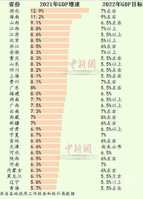 山西、湖北等多个省份表示会力争更好结果。受益于煤炭价格上涨,煤炭大省山西2021年GDP增速达到9.1%,冲到全国第三,经济总量迈上两万亿新台阶。“煤飞色舞”的山西2022年GDP目标为6.5%左右,并表示在实际工作中尽可能争取更好结果。