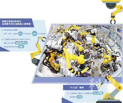 工业机器人是制造业智能化转型升级的动力之源。工业和信息化部装备工业一司司长王卫明介绍,我国已经连续8年成为全球最大的工业机器人消费国,其应用领域已经覆盖汽车、电子、冶金、轻工、石化、医药等52个行业大类、143个行业中类,正极大地改变着人们的生产方式。