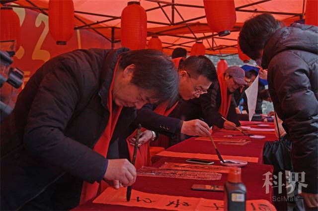 来自常州市书法家协会的10名书法家现场挥毫泼墨,即兴创作春联、“福”字,为市民送上了满满的新春祝福。