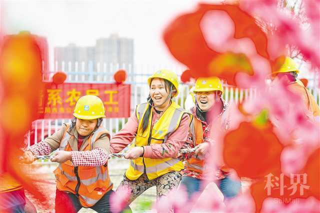 1月24日,中建二局西南公司“关爱农民工 温暖回家路”迎新春活动在空港实验中学项目部举行。活动现场年味浓厚,玩游戏、发礼包、猜灯谜、写春联……坚守在施工现场的30余名工友与管理人员们一起参与,欢声笑语很是热闹。图为工友们正在进行拔河比赛。记者 齐岚森 摄/视觉重庆