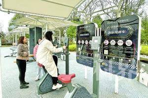 市民在位于白云区泉湖公园的智能健身驿站体验健身设施。