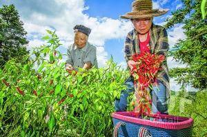开阳县禾丰乡王车村村民在采摘辣椒。