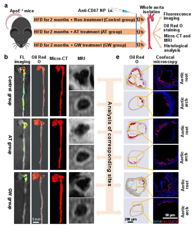 动脉粥样硬化是一种进行性疾病,在治疗与监控过程中,往往需要多次检测。研究团队介绍,实验数据显示多次注射新型纳米荧光探针不会对疾病进程造成影响。此外,以抗动脉粥样硬化药物阿托伐他汀和肝脏X受体激动剂GW3965为例,该荧光纳米颗粒还可实现优于核磁共振和X射线CT的抗动脉粥样硬化药物疗效的快速筛查,有利于加快抗动脉粥样硬化药物的研发进度。