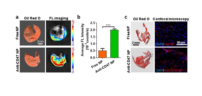“我们也对人动脉粥样硬化斑块样品进行了检测分析,发现抗CD47纳米探针能够准确靶向人颈动脉斑块。展现了临床检测分析的应用前景。”王恺说。