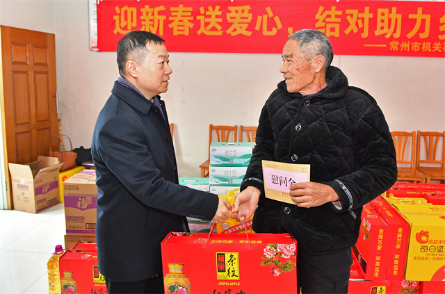 常报全媒体讯 (孙杨 高岷)新春将至,1月27日上午,市机关事务管理局的领导干部、党员代表,来到溧阳市社渚镇姚巷村,开展“迎新春送爱心 结对助力乡村振兴”2022年第一季度茅山老区乡村振兴帮促活动。