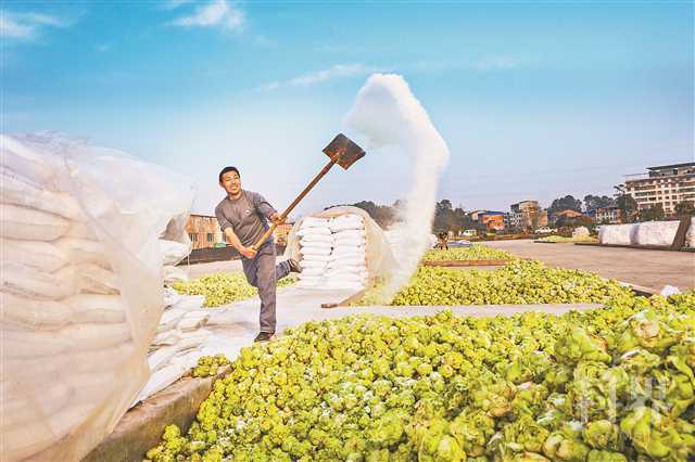 涪陵区江北街道二渡村村民处理收获的青菜头。(资料图片)张政 摄/视觉重庆