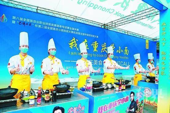 图为2021年4月24日第二届全国面条专项技能大赛现场,川渝选手现场制作小面。