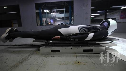 当然,光有大风吹,并不是风洞模拟训练。在模拟场景中,李波团队设计了一个特殊的滑板,在滑板上运动员可练习蹬冰动作;开动跑台,运动员便可进行轮滑模拟训练;开发的六自由度系统可满足不同角度翻转,常用于车撬项目训练。这样冬季项目的训练就再也不受天气影响,即便是在盛夏也可以在模拟场景中完成,在一定程度上解决了冬季项目训练场地开放周期短、维护成本高的难题。