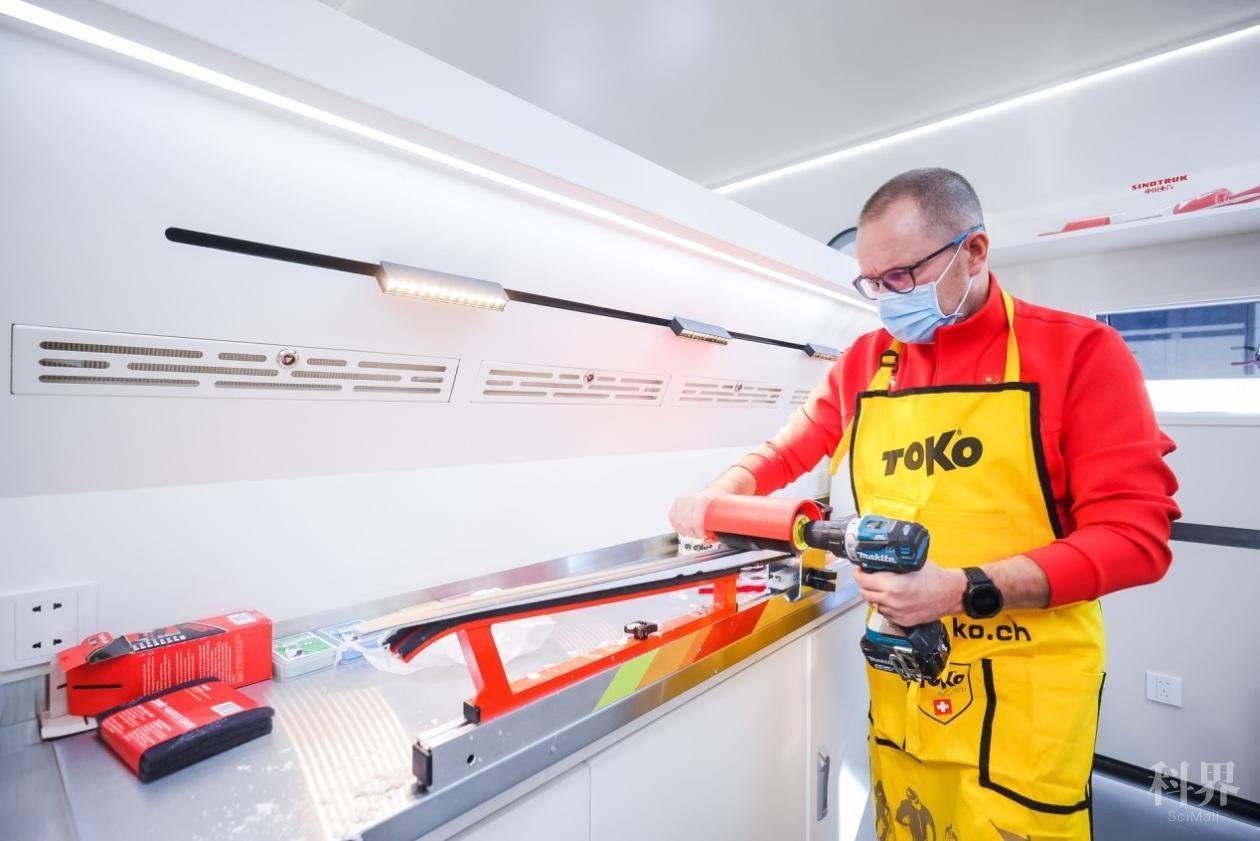 雪蜡车,顾名思义,是供打蜡师在赛前为雪板打蜡的装备。经打蜡后的雪板不仅能节省体力、更易操控,还可有效提升竞技成绩。“滑雪竞速竞争激烈,0.01秒的差距都可能错失奖牌,这就需要专业人员根据温度、湿度、雪场情况有针对性的给雪板打蜡。”泰山体育集团技术中心主任徐培明说。