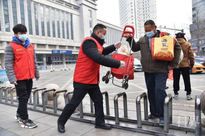 从公交站点到火车站进站口有一段距离,且中间还隔着一道低矮的防护栏,很多返乡的乘客拿着大包小包的行李,十分不便。“每年春运,回家的人都会携带很多行李,我们这些志愿者就派上了用场,尤其是老人和带孩子的妇女,不少都需要帮助。”22岁的大学生志愿者王洪禧一边和记者说着话,一边用目光搜寻需要帮助的乘客。看见一位拎着大件包裹的老大爷迎面走来,王洪禧一个箭步走上前,弯下腰接过包裹,帮他拎到了进站口处。