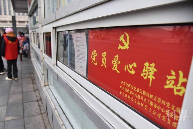 徐州火车站11路公交总站,设立了党员爱心驿站。