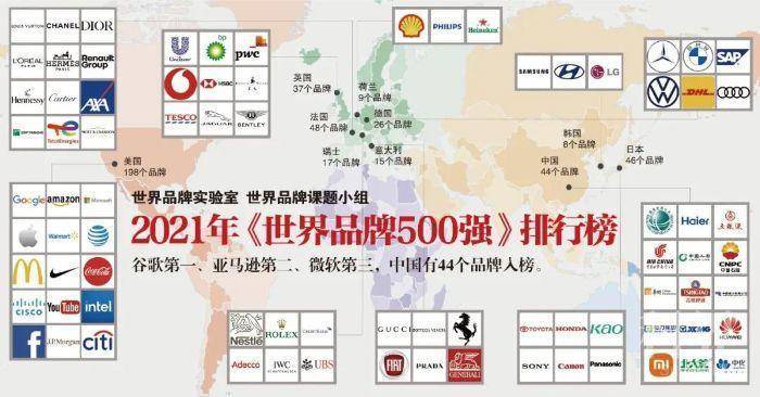 榜单显示,今年中国品牌入选数达44个,上榜企业数量再次超过英国(37个),继续保持第四名的好成绩,是世界品牌大国的“第二阵营”。