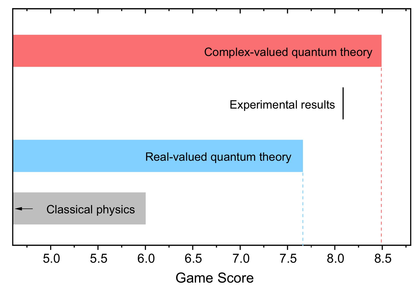潘建伟团队基于自主设计研发的超导量子线路和高精度量子操控技术,在世界上首次完成了该实验。在这个理论框架下,实数形式的界限为7.66,而实验测试结果为8.09,超过判据43个标准差。实验结论支持量子物理需要使用复数。