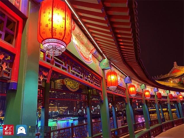 1月27日晚,大众网·海报新闻记者来到泰安老街,看到大大小小的红灯笼挂满了整个商业街,有的连成串,有的摆出“中国龙”造型。除灯笼外,还有“春”字型的红色花灯,以及挂满了红气球的景观树,各种贴合春节主题、烘托新年气氛的装饰,吸引了不少市民、游客打卡拍照。