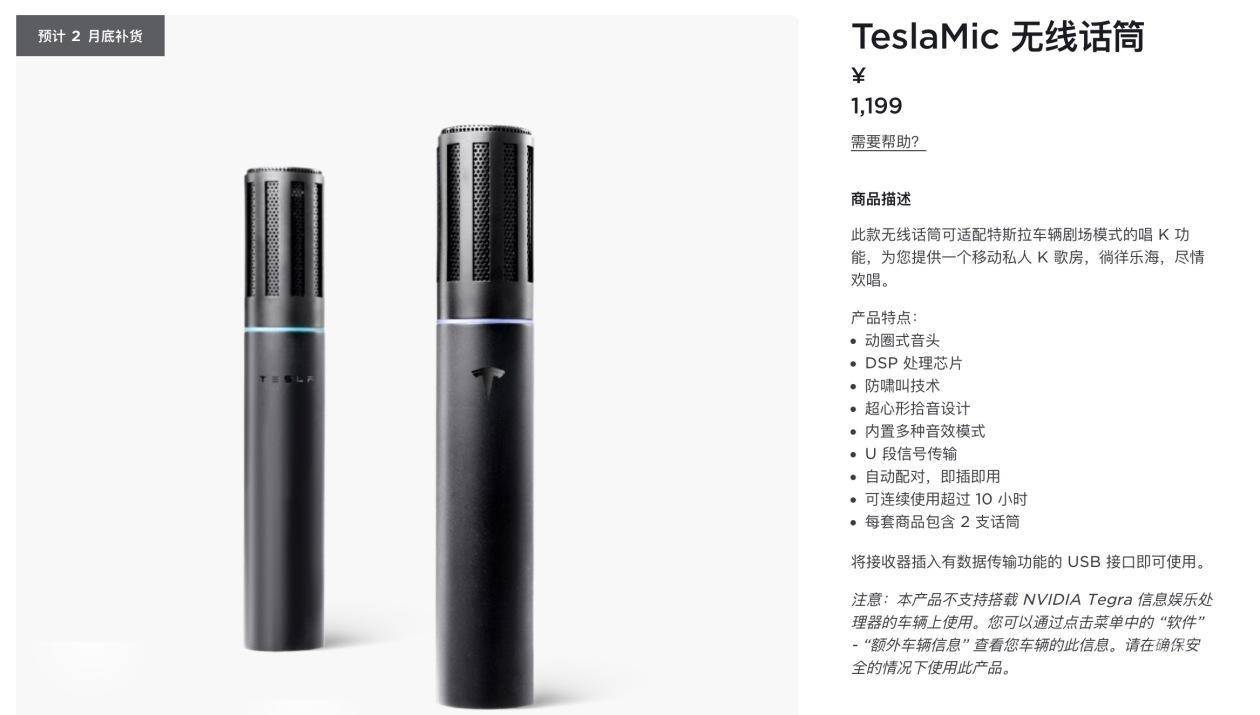 特斯拉将上线车内KTV TeslaMic无线话筒已售罄