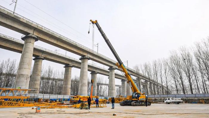 桥柱之间,多台徐工履带起重机正在繁忙地施工。这批“徐工金“的主人,正是时知和。看着眼前的设备,他颇感自豪,“郑州东三环一年计划100多公里,我们干了至少80%,都是用的徐工设备!“
