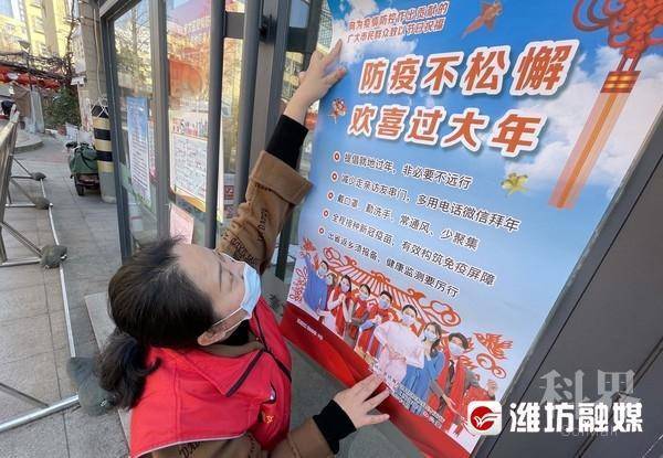 奎文门社区工作人员张贴防疫宣传海报。