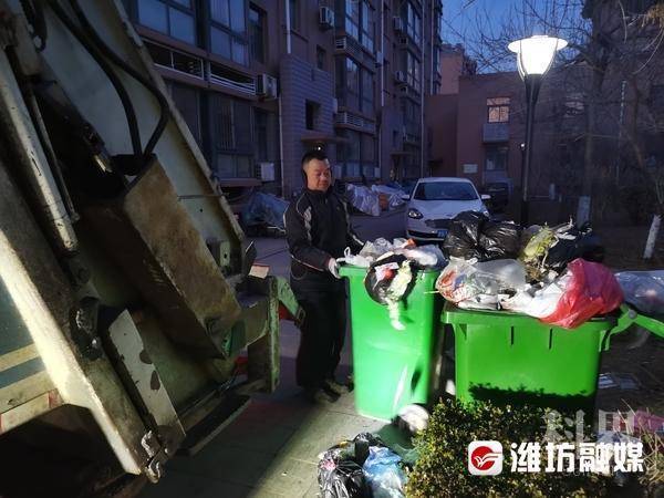 2月3日早上6时许,在奎文区江山帝景小区里,今年42岁的张立波像往常一样忙碌着,他是一名垃圾收运车司机,平时既当司机,又当垃圾收运员,将小区道路旁已经装满的垃圾桶搬运到收运车上,把里面的垃圾全部倒进车里,就这样挨个垃圾桶进行收运,非常辛苦。