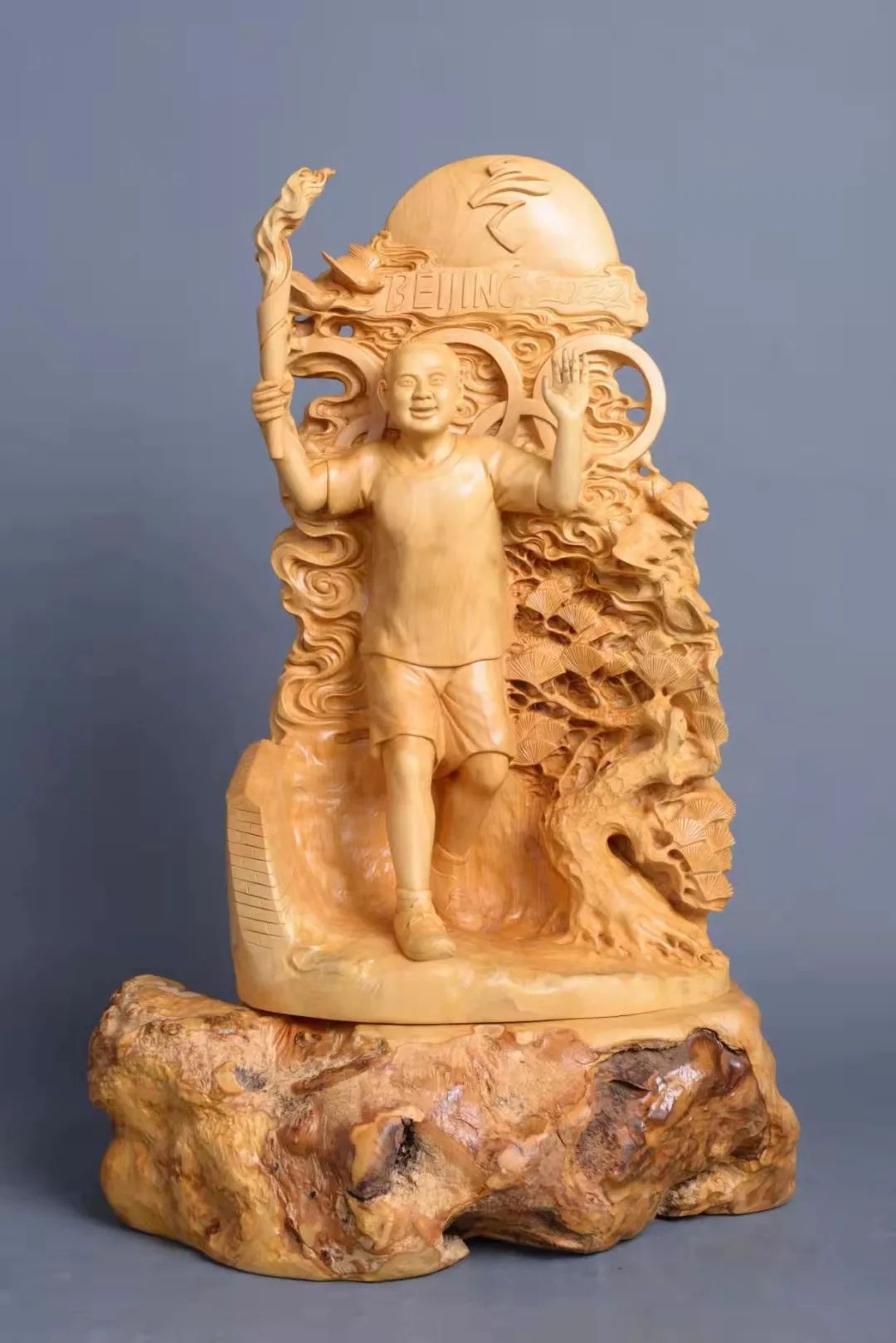 据虞金顺介绍,2008年北京奥运会期间,他的一件乐清黄杨木雕作品《中国·东方神韵》曾被选中亮相中国体育代表团团长会议室。这次冬奥会,他又创作了3件乐清黄杨木雕作品。