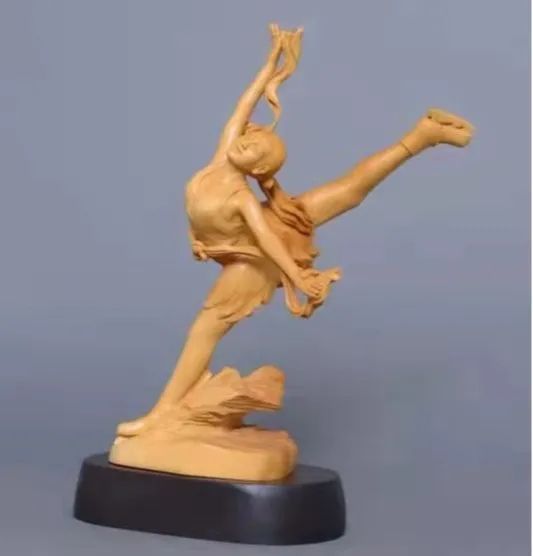 黄杨木雕作品《滑雪》和《冰上舞者》。 胡一兵 摄