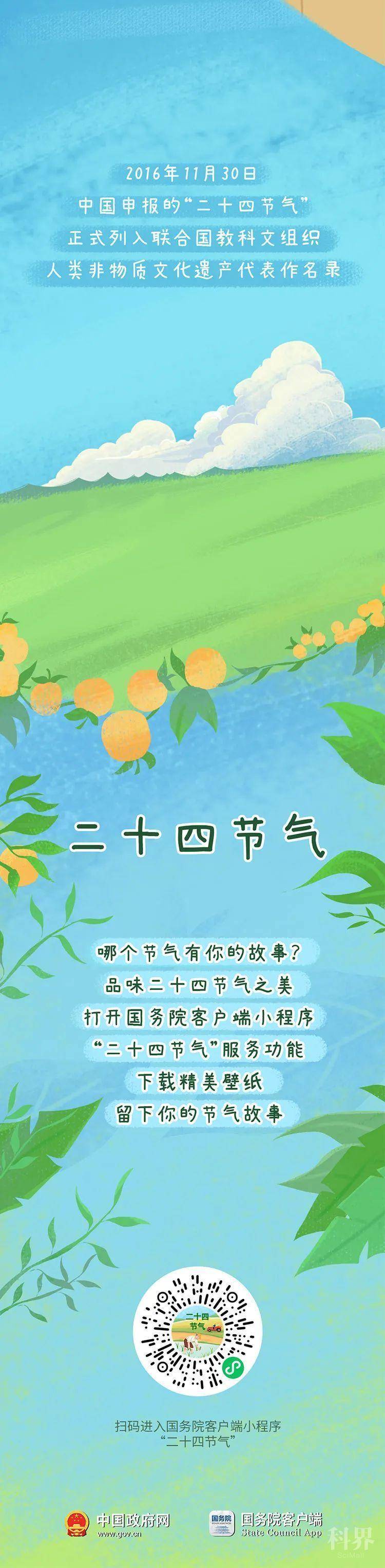 二十四节气是中国古人通过观察太阳周年运动,认知一年中时令、气候、物候等方面变化规律所形成的知识体系和社会实践。