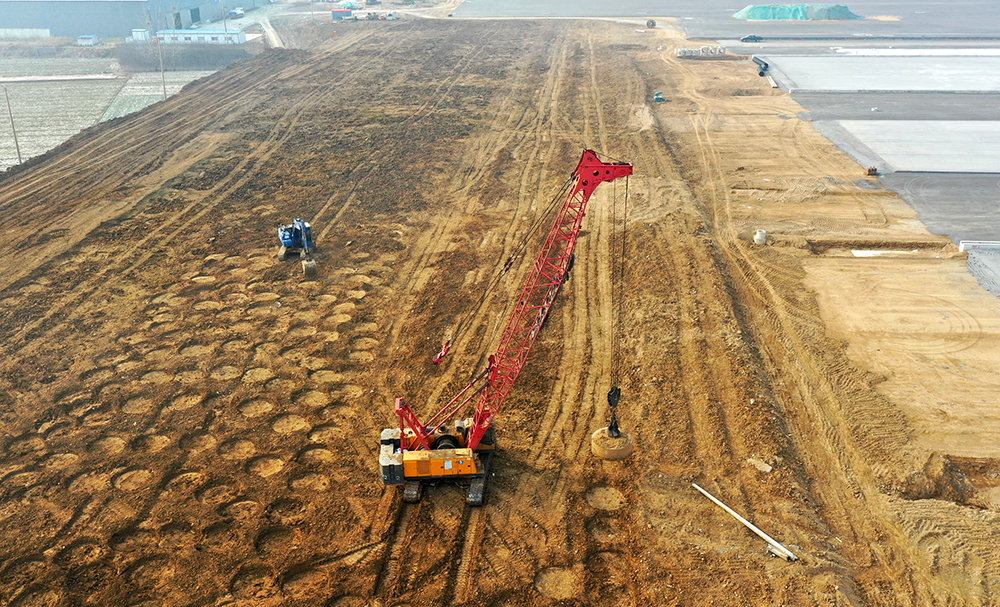 据了解,邳州新港分两期建设,目前,一期工程水工部分桩基全部完成,陆域部分基础处理基本完成,清表等各项准备工作已就绪;二期工程水工部分已完成工程量80%,陆域部分春节前完成可施工区域基层处理。