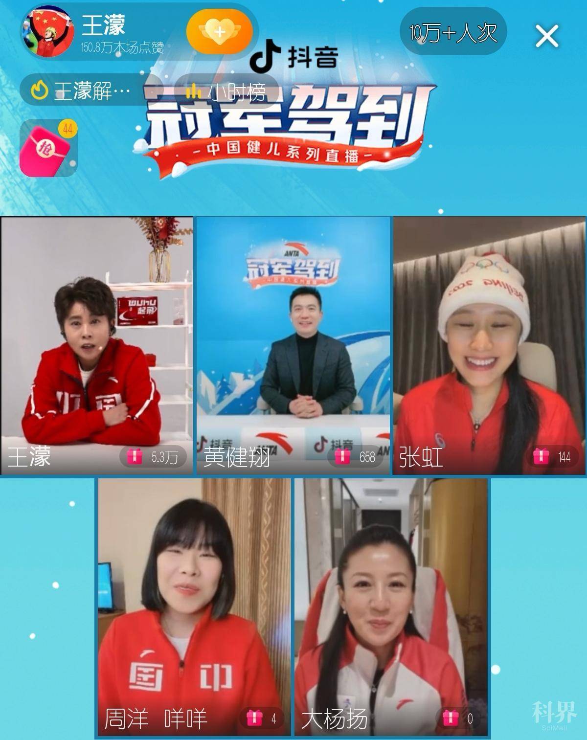 在随后抖音的个人直播中,王濛还连线了中国冬奥首枚金牌获得者大杨扬、索契冬奥会速度滑冰冠军张虹、短道速滑冬奥“三金王”周洋和金牌解说员黄健翔。超10万网友观看了这场直播,王濛再次专业分析了中国短道速滑队的精彩表现。