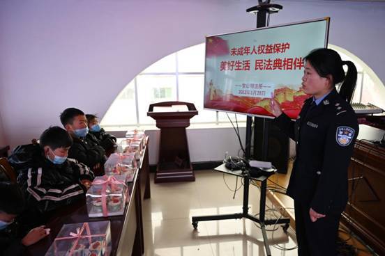此次活动中,官山镇镇司法所所长张业熙现场播放法治道德微电影,结合当下热点熊孩子打赏网络主播、新冠肺炎疫情形势下未成年人临时无人照顾等问题以案释法,并重点讲解《民法典》关于未成年人保护法知识点,教育孩子们增强安全意识和自我防范能力。