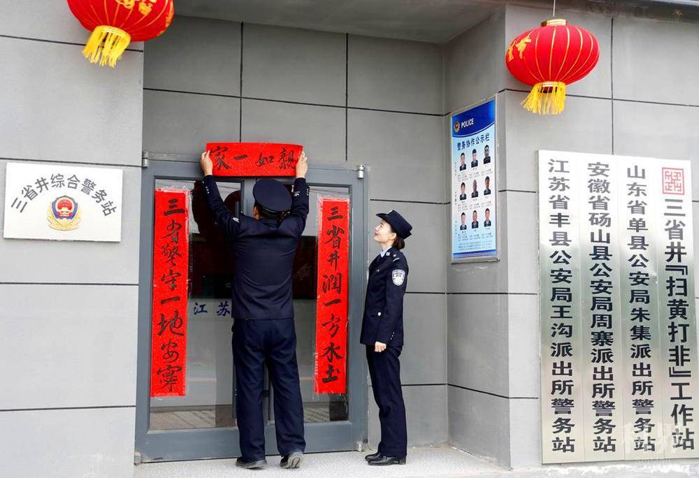 在江苏省丰县、山东省单县、安徽省砀山县交界的“三省井”综合警务站内,民警们把驻地装点一新,挂上红灯笼、贴上春联,到处洋溢着浓浓的年味。