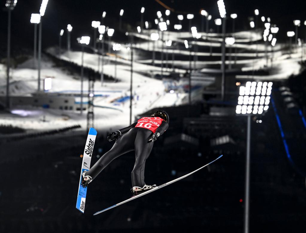 2月3日,北京冬奥会跳台滑雪女子标准台官方训练在国家跳台滑雪中心举行。加拿大选手亚历山德里娅·洛蒂特在训练中。新华社记者冯开华摄