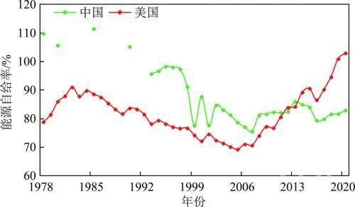 ▲中美能源自给率比较