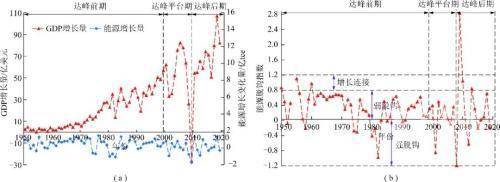 研究人员根据现代化进程、能源消费和碳排放趋势,将美国碳排放分三个阶段:即碳达峰前期(1949—1999年)、碳达峰平台期(2000—2008年)、碳达峰后期(2009年至今)。依据Tapio弹性分析法对美国能源消耗与GDP增长的脱钩程度进行定量分析后,得到如下认识: