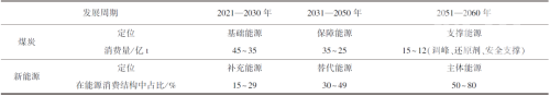 2050—2060年,随着进入碳中和攻坚期,新能源大幅度代替传统化石能源,新能源在能源消费中的占比提高到50%~80%,成为主体能源。与此同时,受碳排放约束,煤炭只剩下电力调峰、碳质还原剂以及保障能源供应安全等不能被替代的用途,煤炭消费量下降到15亿~12亿t/a,由保障能源转变为支撑能源。