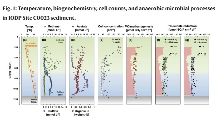 他们发现,生活在深处、炙热沉积物中的微生物有着极高的能量代谢率,与之前在深海海底发现的代谢很慢的微生物形成了鲜明反差。研究人员认为,这个微生物种群必须在这种极端环境下保持很高的代谢率,才能提供它们修复高温造成的细胞损伤时所需的能量,而沉积物中的有机物受热会为它们提供丰富的营养物质。